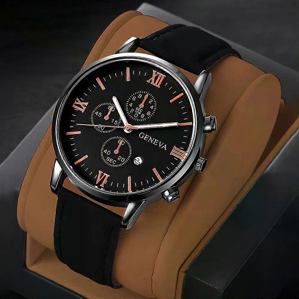 1pc Men's Black PU Strap Calendar Casual Quartz Watch