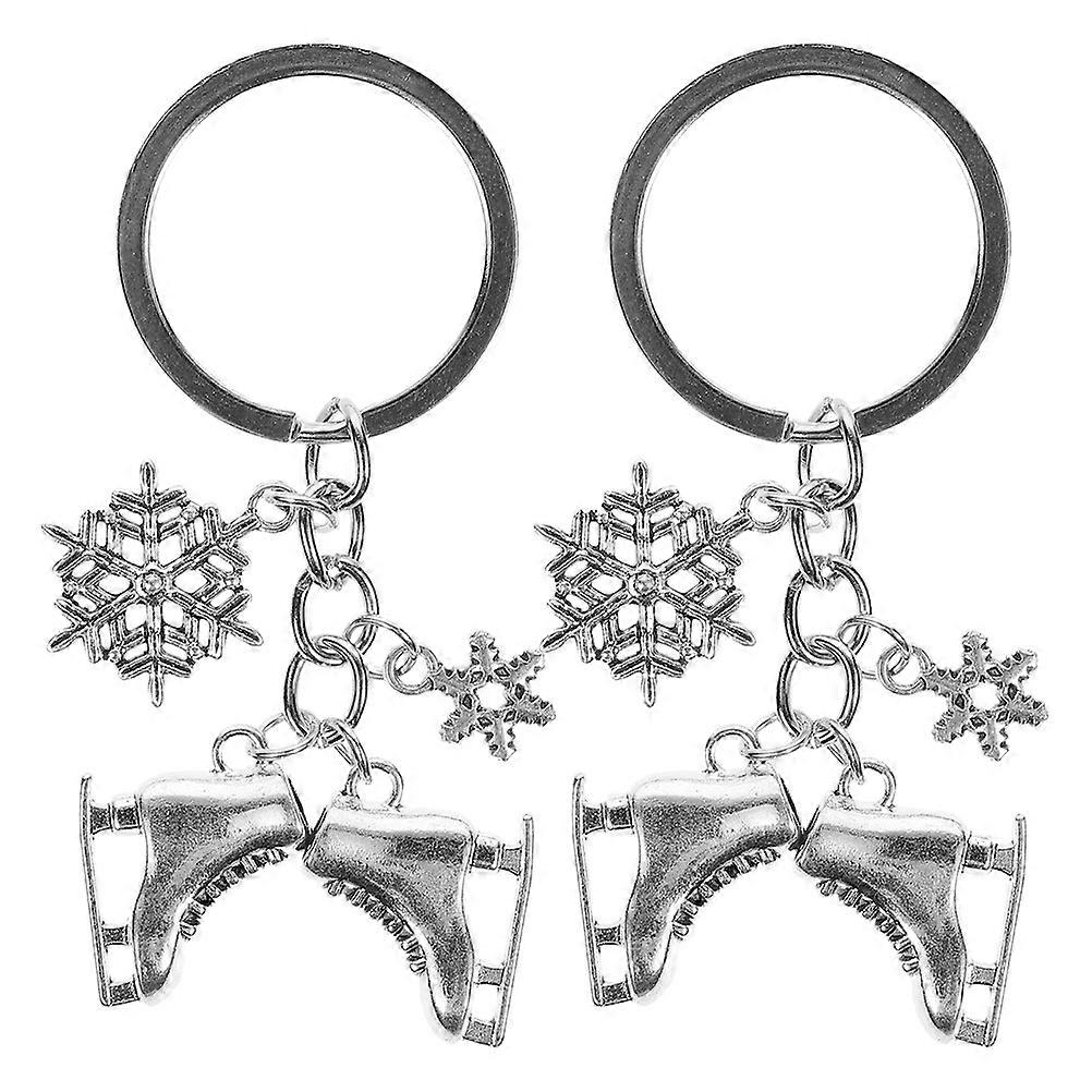 Silver Color Skates Snowflake Keychain for Decoration 2Pcs Zinc Alloy