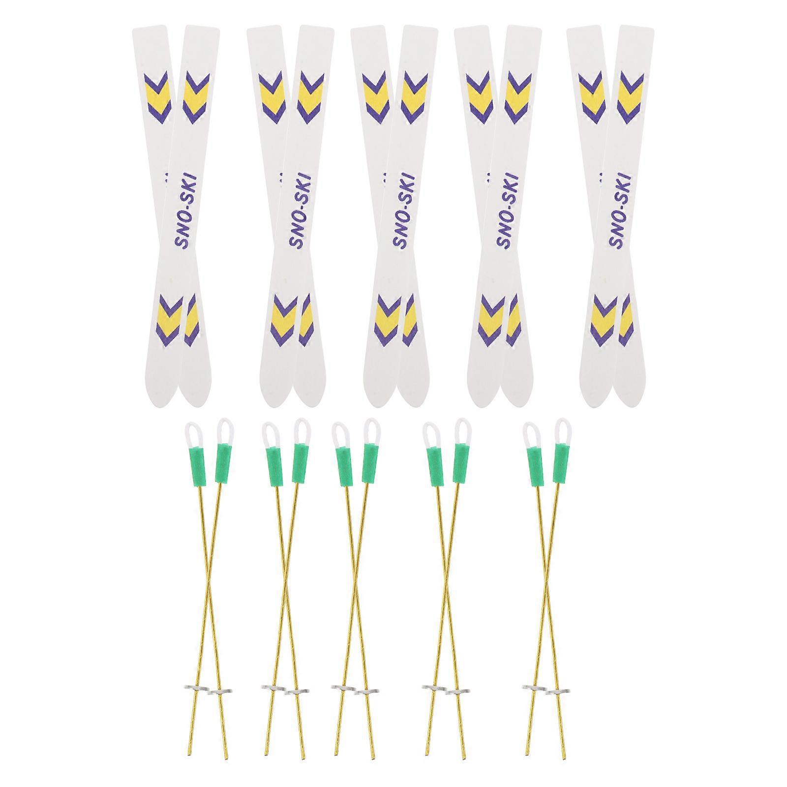 Micro Skiing Miniature Skis with Poles for Decor 5Set Holiday Accessories
