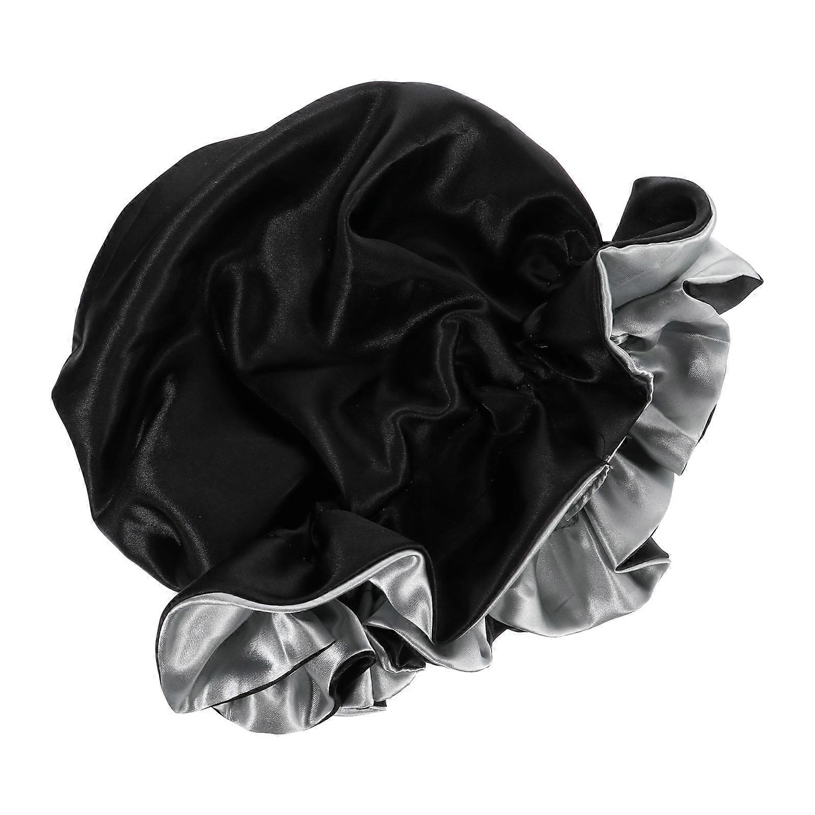 Black Satin Adjustable Hair Bonnet for Sleeping Wearing Lightweight Breathable Protects Hair Maintains Styles 7.5 Inches