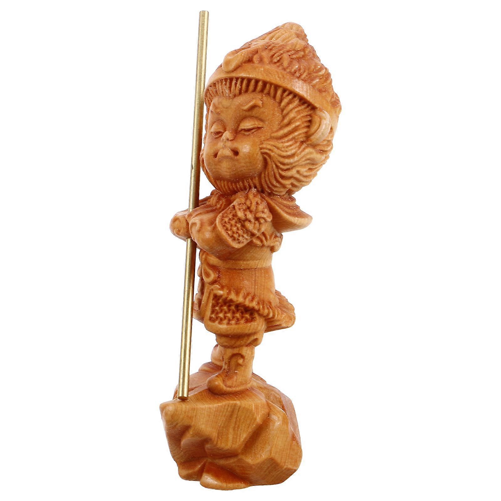 Monkey Decor Hand Carved Wooden Wukong Statue for Home Display