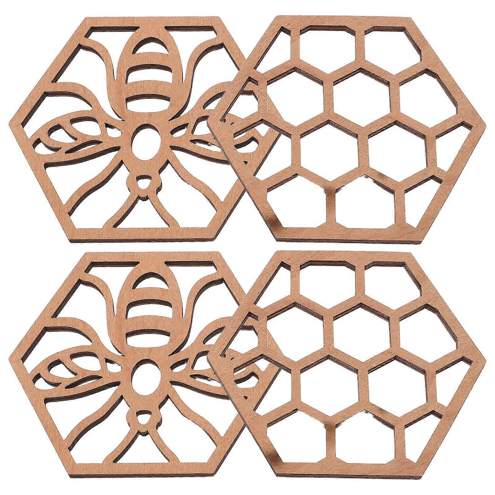 Wooden Honeycomb Ornaments for Decor Creative Beehive Design Coasters Light Brown 4pcs