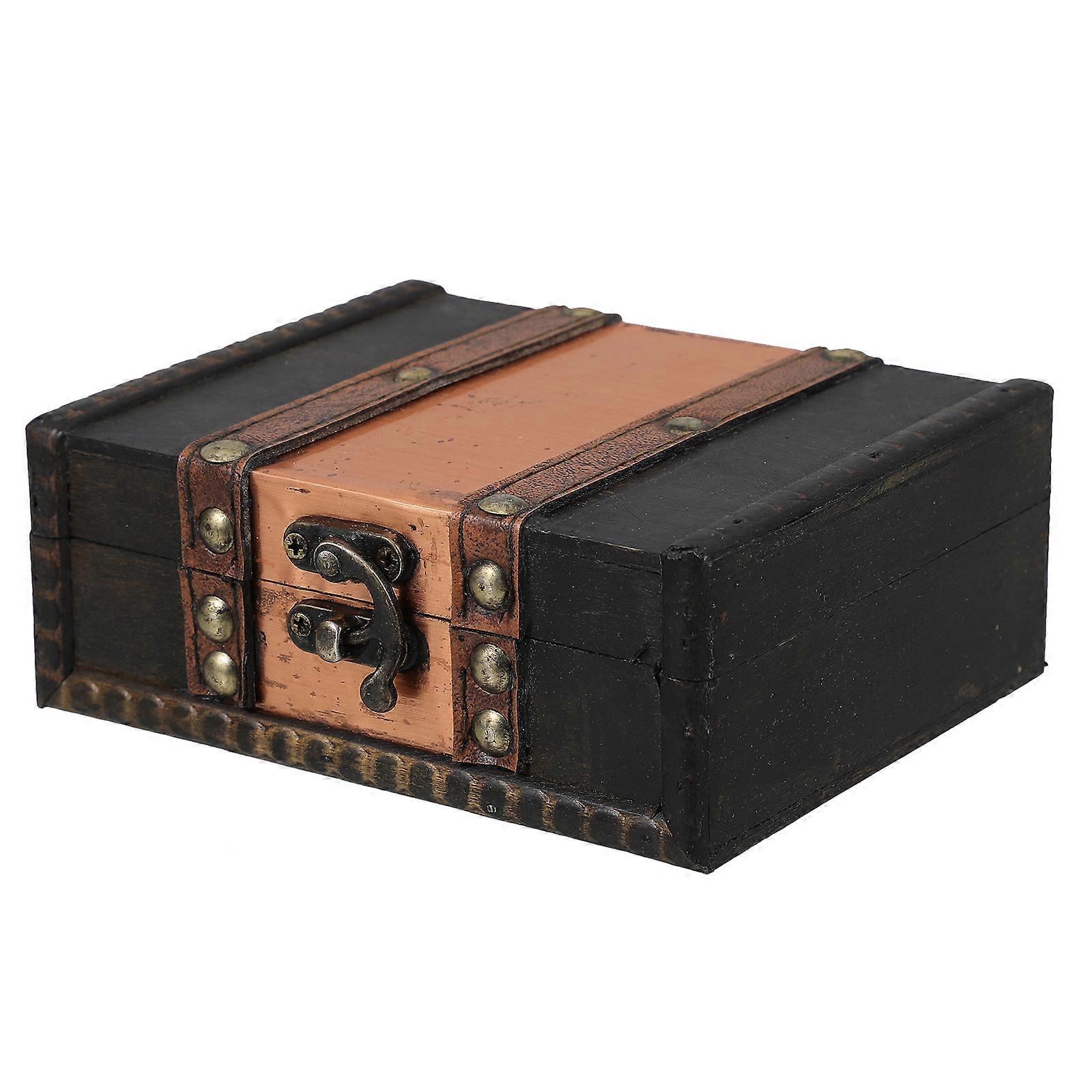 Vintage Wooden Jewelry Box with Lock for Desktop Organization Small Decorative Treasure Chest 6.5 x