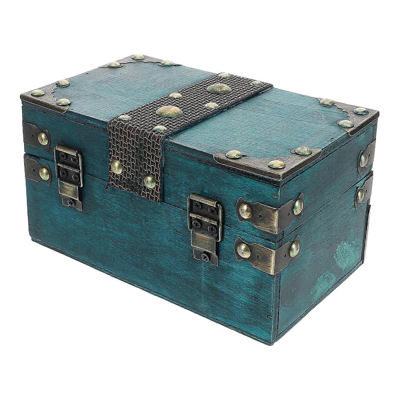 Navy Wooden Storage Box with Lock for Secure Jewelry Storage Vintage Design Durably Crafted 6.5x4.5x3 inches