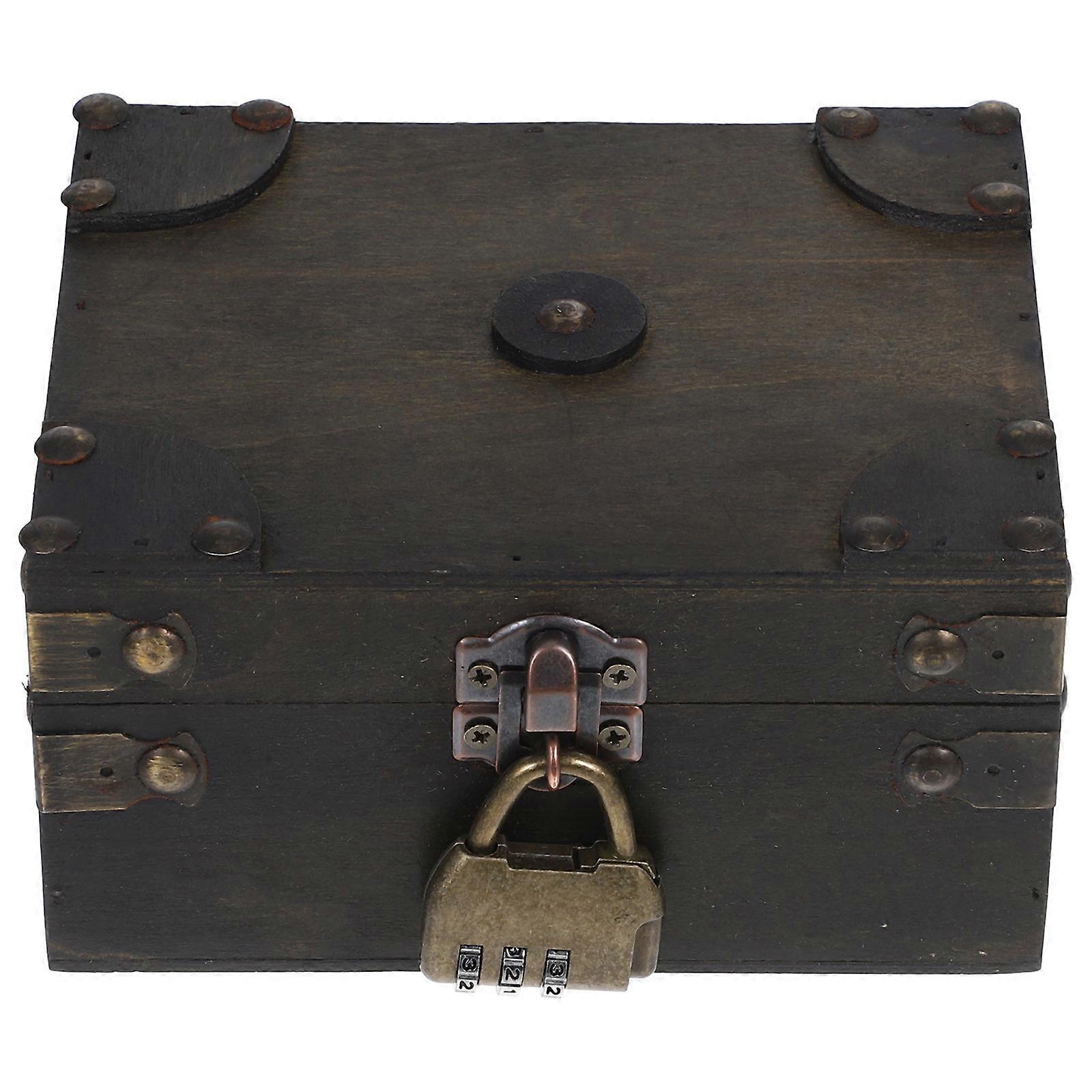 Vintage Wooden Jewelry Box for Party Use Dark Brown Treasure Chest with Hinged Lid 6.5 x 4.5 inches