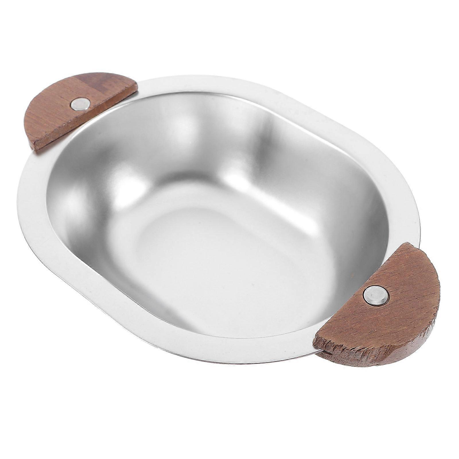Stainless Steel Oval Bowl with Wood Handles for Home and Versatile for Salad Fruits Desserts 14.5 x 9.5 x 3 inches