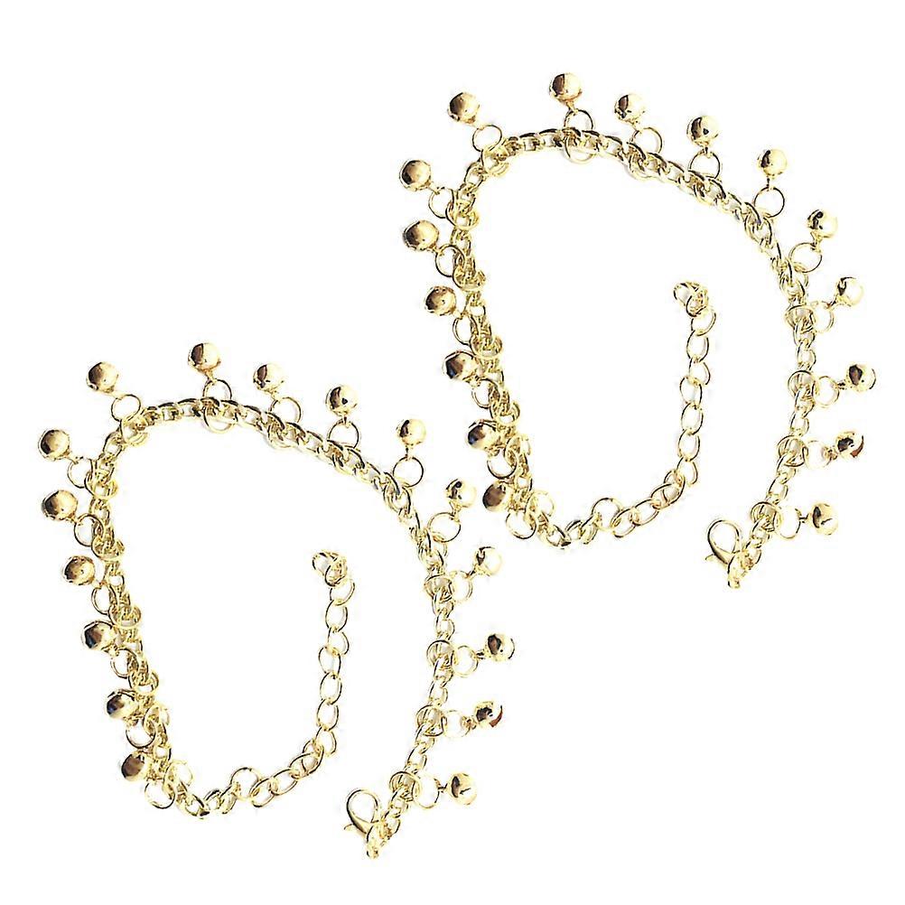 2pcs Adjustable Bell Anklets for Women Fashionable Summer Beach Foot Jewelry with Clear Sound Bells for Seaside