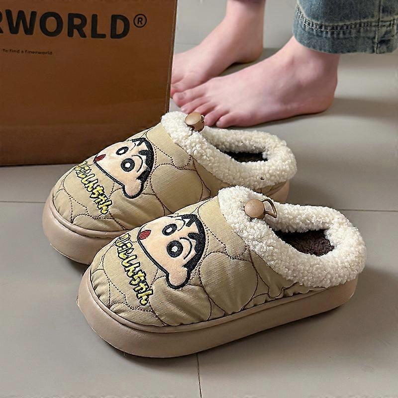Kawaii Crayon Shin-chan Winter Couple's Slippers Boots Fuzzy Fur Anti-slip Soft Sole Outdoor Indoor Comfort Men Plush Houseshoes