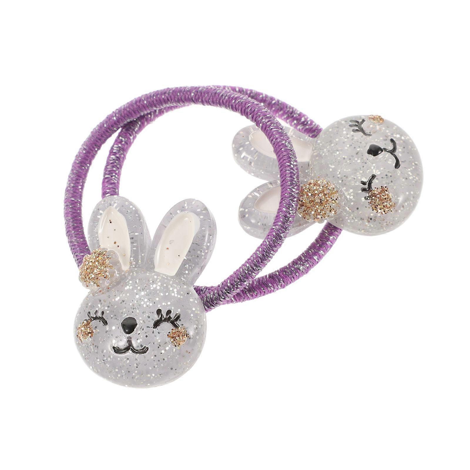 Adorable Violet Resin Rabbit Hair Ties for Kids with Fine Craftsmanship and Durability 2pcs