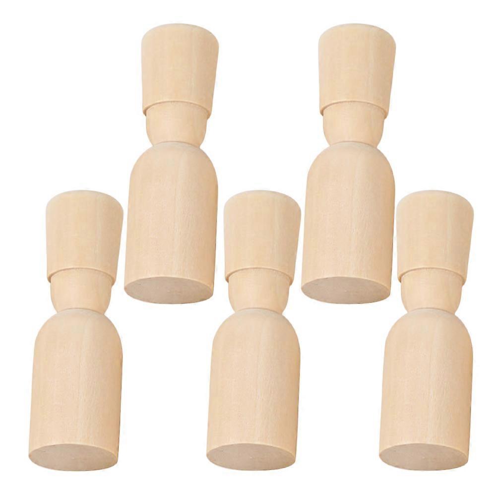 Original Wood Color Peg Dolls for DIY Craft 5Pcs Unfinished Wooden Figures