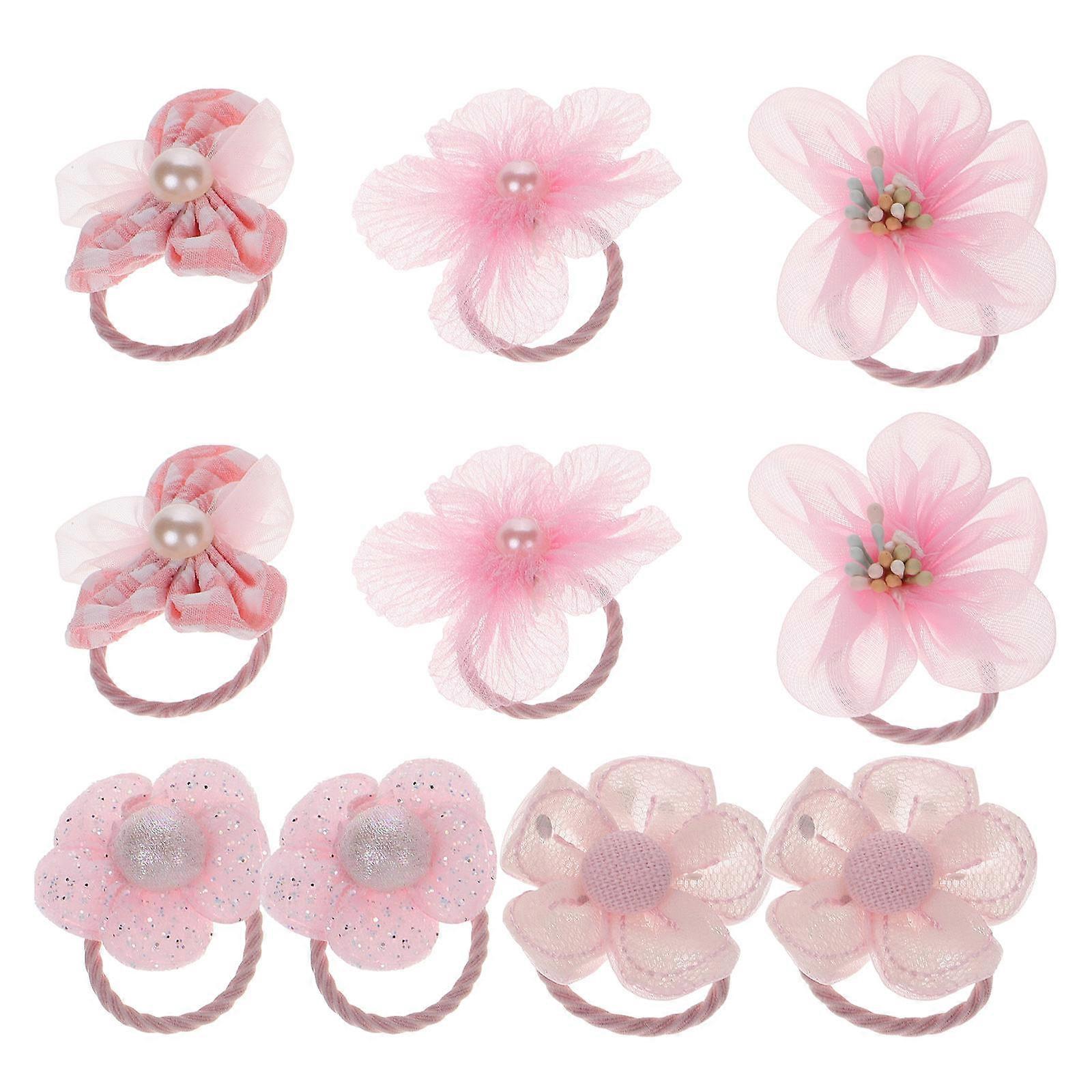 Pink Flower Hair Ties for Girls Decorative 10Pcs Fabric Hair Accessories