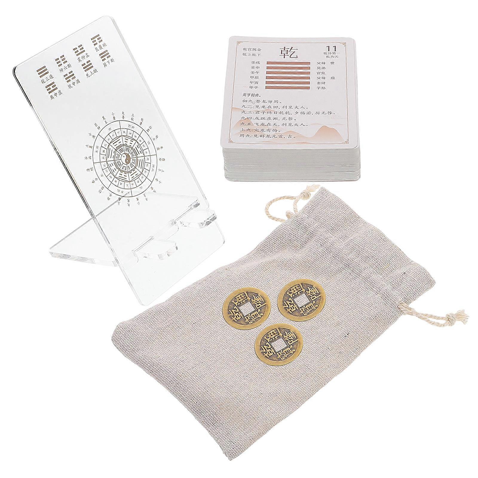 The I Ching fortune telling card set is designed to help users navigate the of life through . Each card in the set represents one of the 64 hexagrams and is crafted from sturdy paper. The detailed illustrations and explanations make it easy for beginners to understand and use the cards for divination and personal growth. Features -Color:Multi -Material:Plastic and paper -Size:8.50X6.00X0.10cm/3.34X2.36X0.04in - set: features all sixty-four hexagrams, offering a thorough introduction to the i ching for beginners. -Cultural enrichment: helps users explore the ancient chinese practice of divination and the wisdom of the i ching. -Multiuse: ideal for divination, as a collectible, or as a thoughtful present -Unique design: the distinctive design adds a touch of elegance and personality to your collection -Crafted with care: practical craftsmanship ensures each card is practical and beautifully made Package list: 64 x cards 1 x stand 3 1 x bag