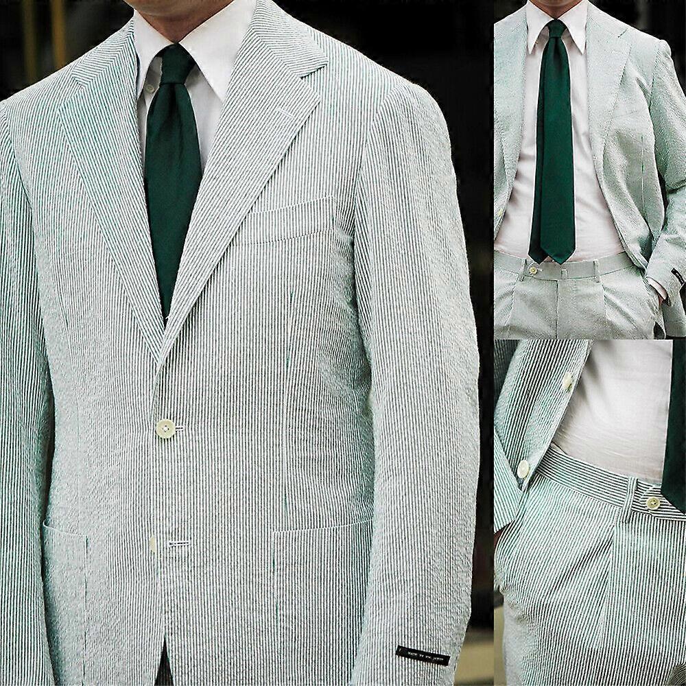 Green Seersucker Men Suits Summer Formal Party Pants Wedding Groom Tuxedos