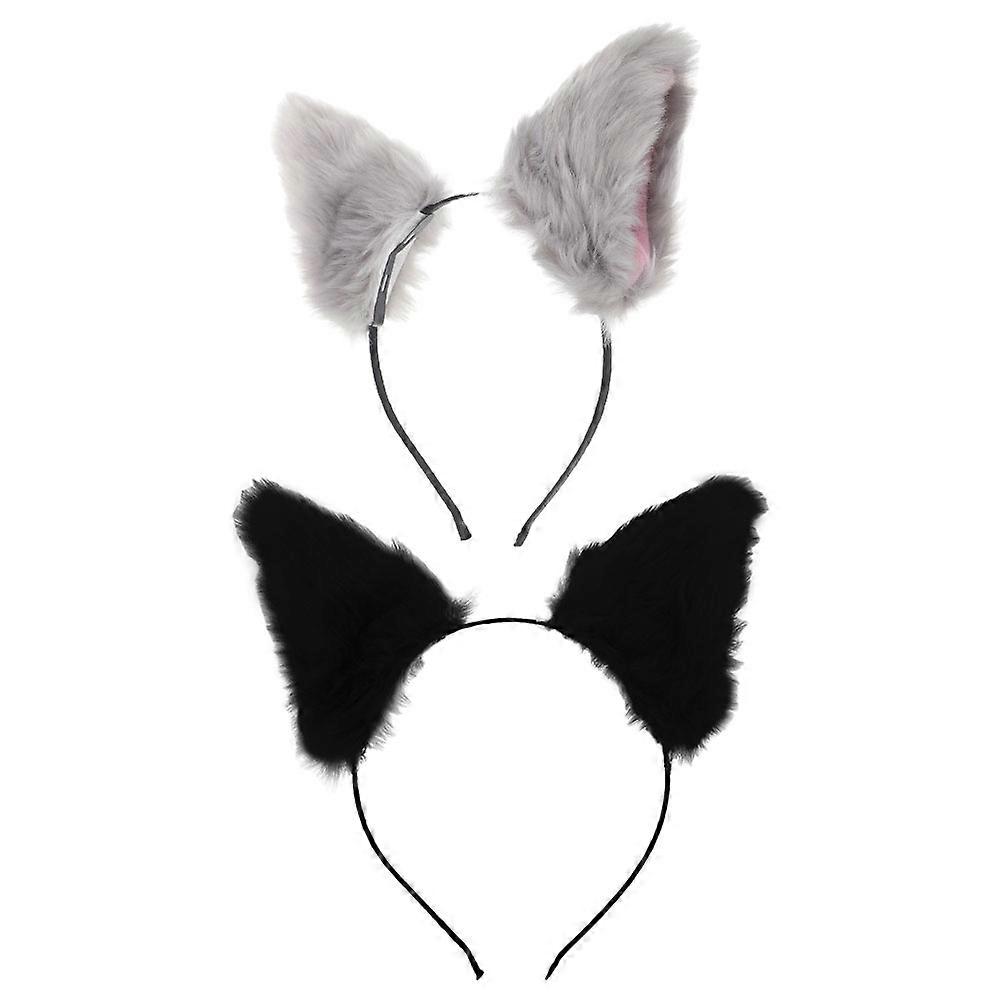 Plush Cat Ears Headband for Party Halloween Cosplay 2Pcs Adjustable Soft Hairband