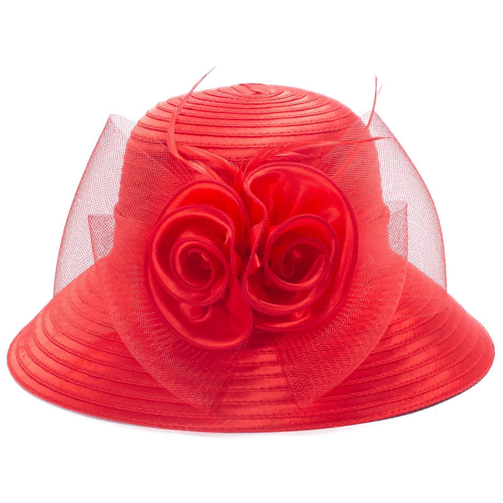Women Satin Crin Feather Veil Flower Kentucky Derby Racing Party Dress Hat A433