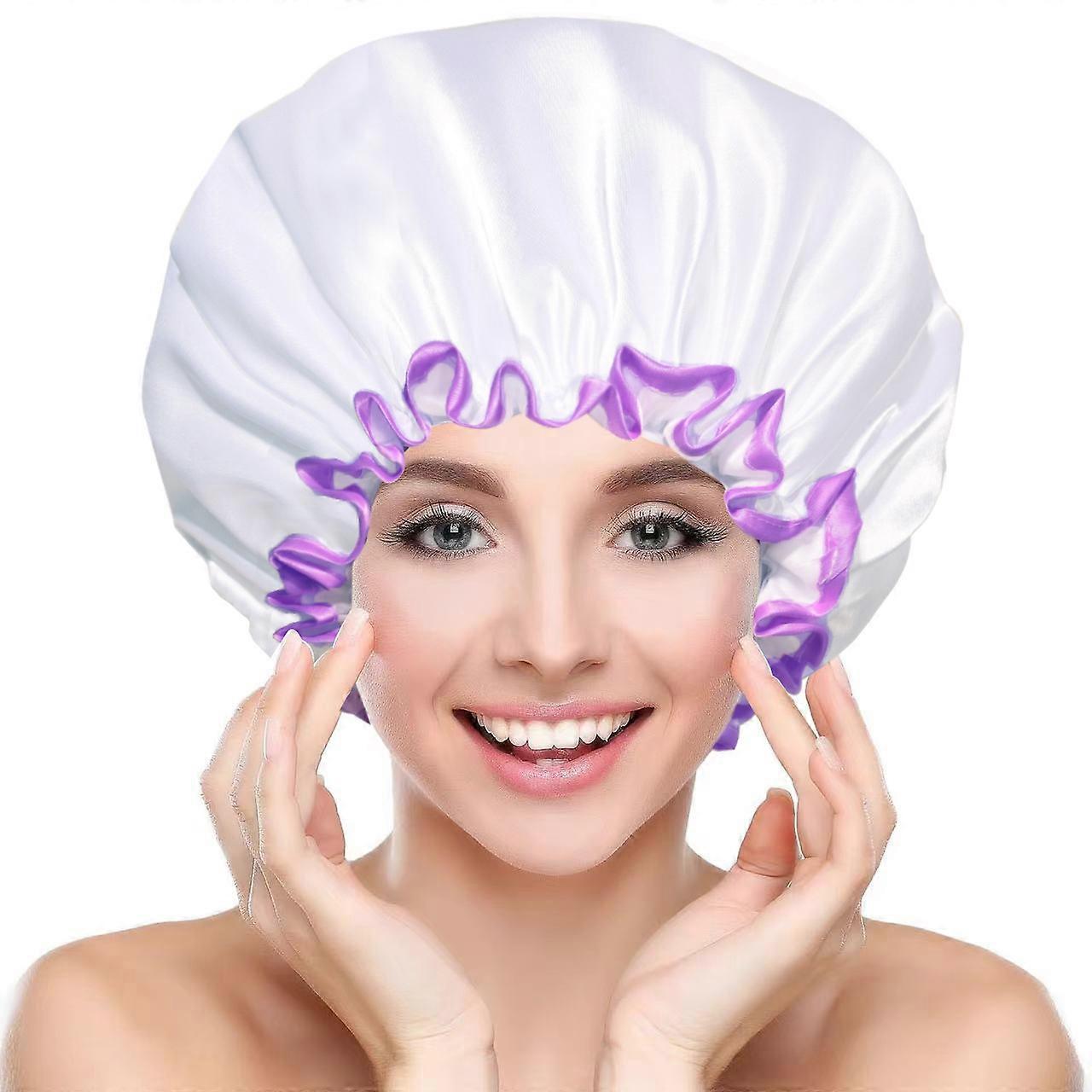 Large Female Shower Cap Solid Color Satin Double Layer Waterproof Bath Cap Peva Hair Baking Oil Cap Care Cap Shower Cap