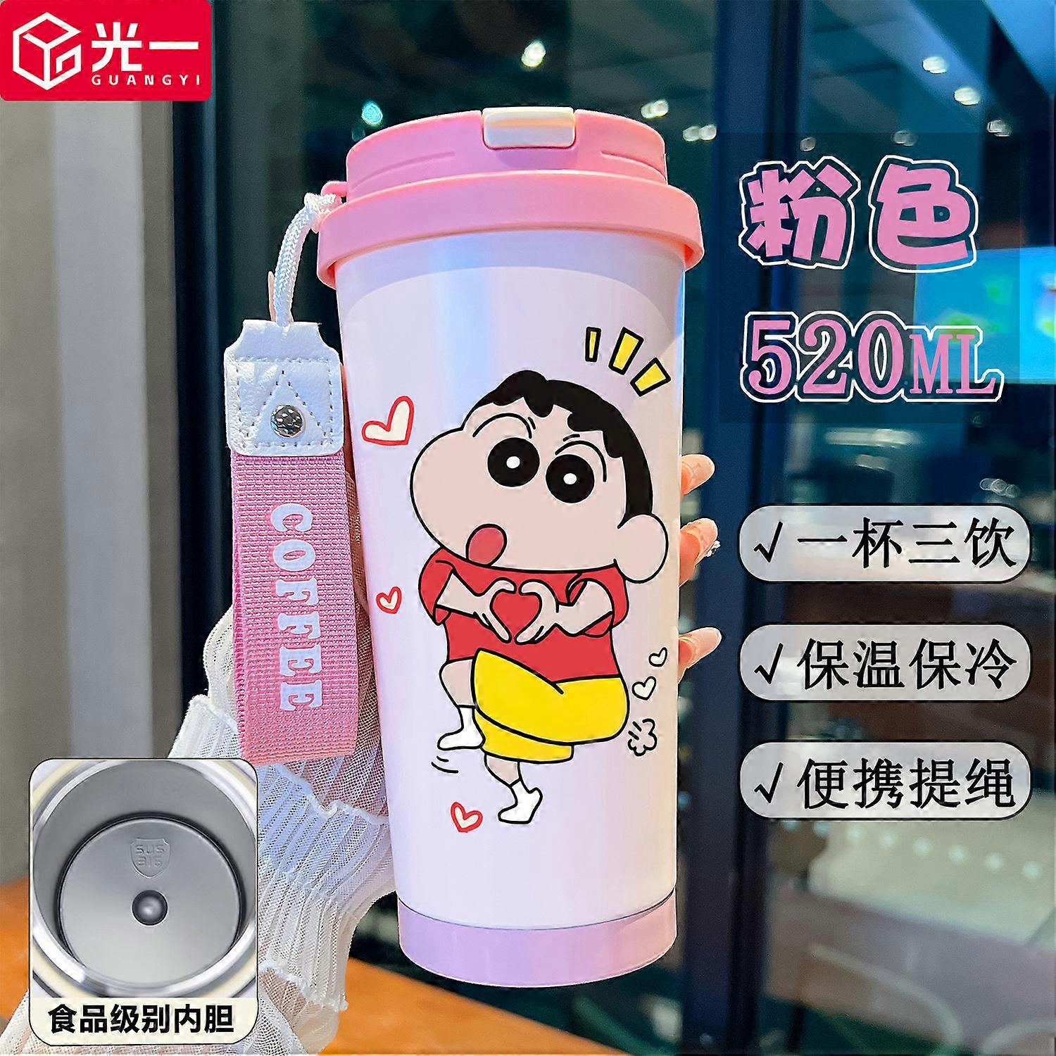 Crayon Shin-chan Insulated Coffee Travel Cup Stainless Steel Thermos Leak Proof Double Wall Cartoon Design Keeps Drinks Hot Cold