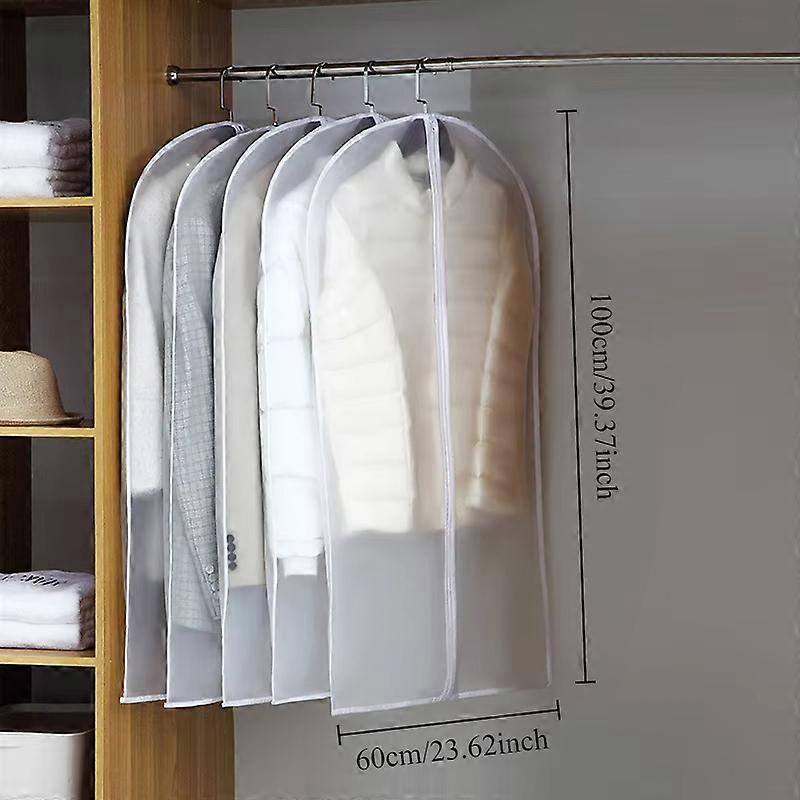5PCS Clothes Dcomt Cover with Zipper Suit Coat Jacket Transparent Storage Bag Waterproof Dcomtproof Hanging Clothes Bag