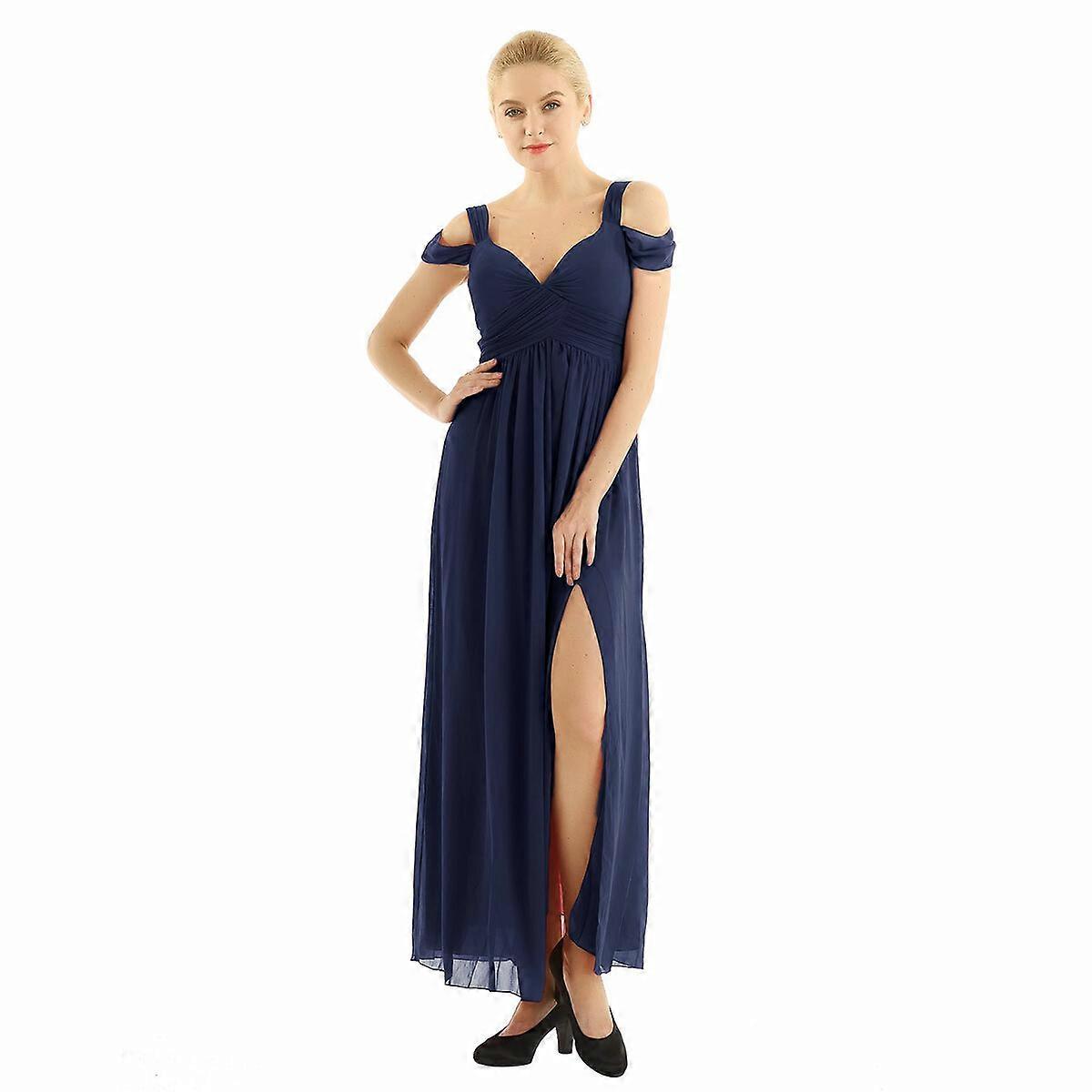 Women Lady Chiffon Off The Shoulder Pleated Deep V Neck Long Bridesmaid Dress