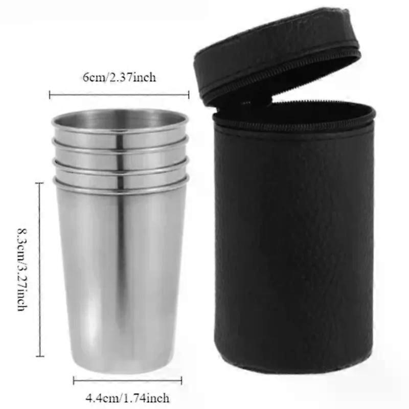 4Pcs/Set Outdoor Stainless Steel Water Cups With Case Hiking Camping Picnic BBQ Beer Coffee Cups Portable Travel Drinkware
