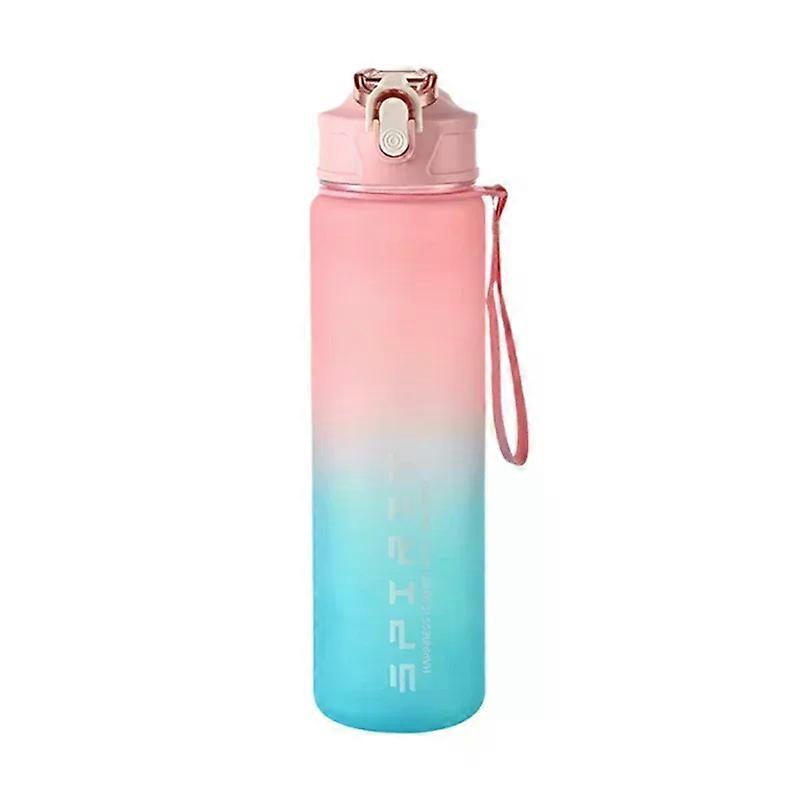 1pc Gradient Sports Water Bottle with Straw & Time Marker for Outdoor Fitness Hiking & Gym Leakproof Travel Water Bottle