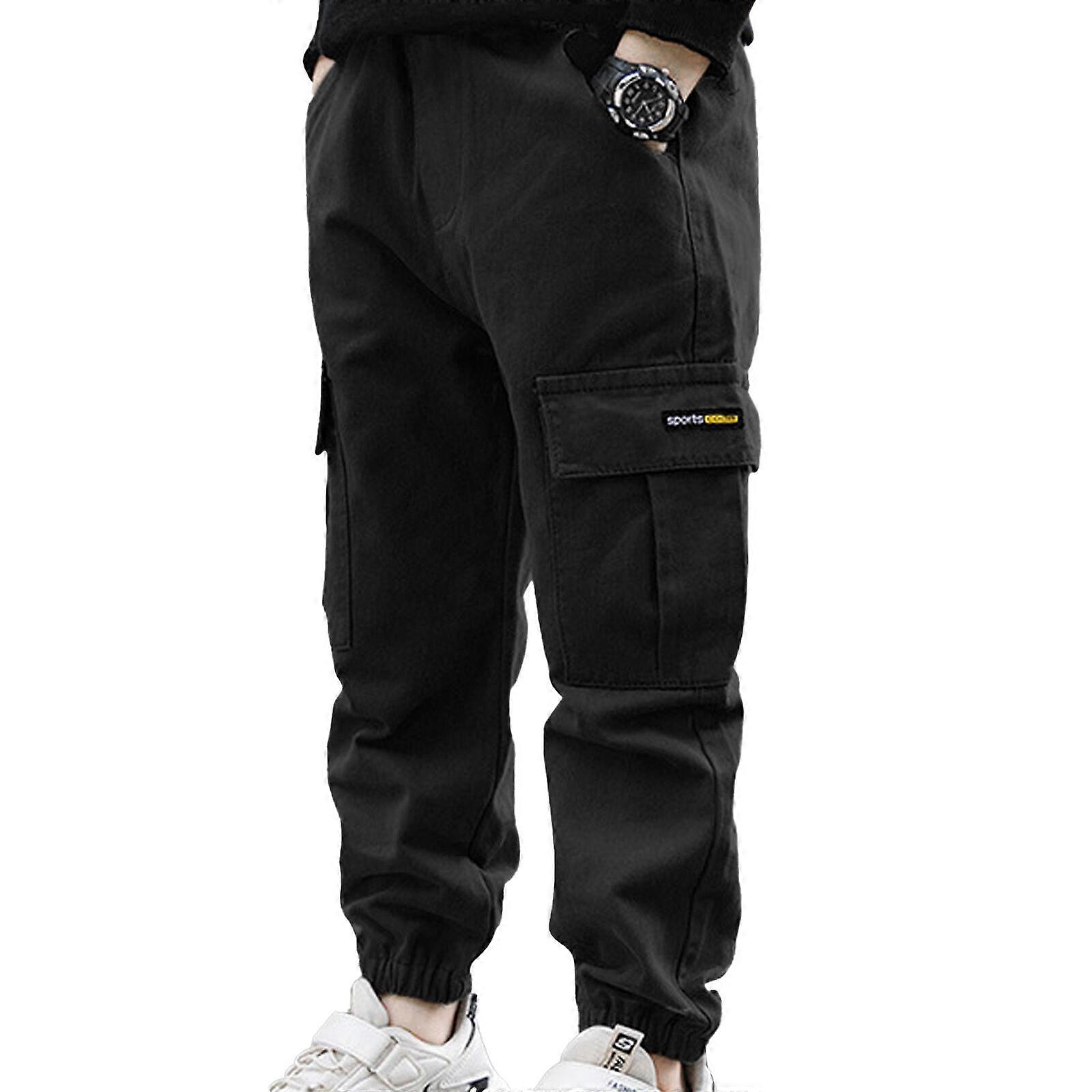 Kids Boys Casual Dungarees Pants Fashion Pure Color Cargo Trousers for Autumn