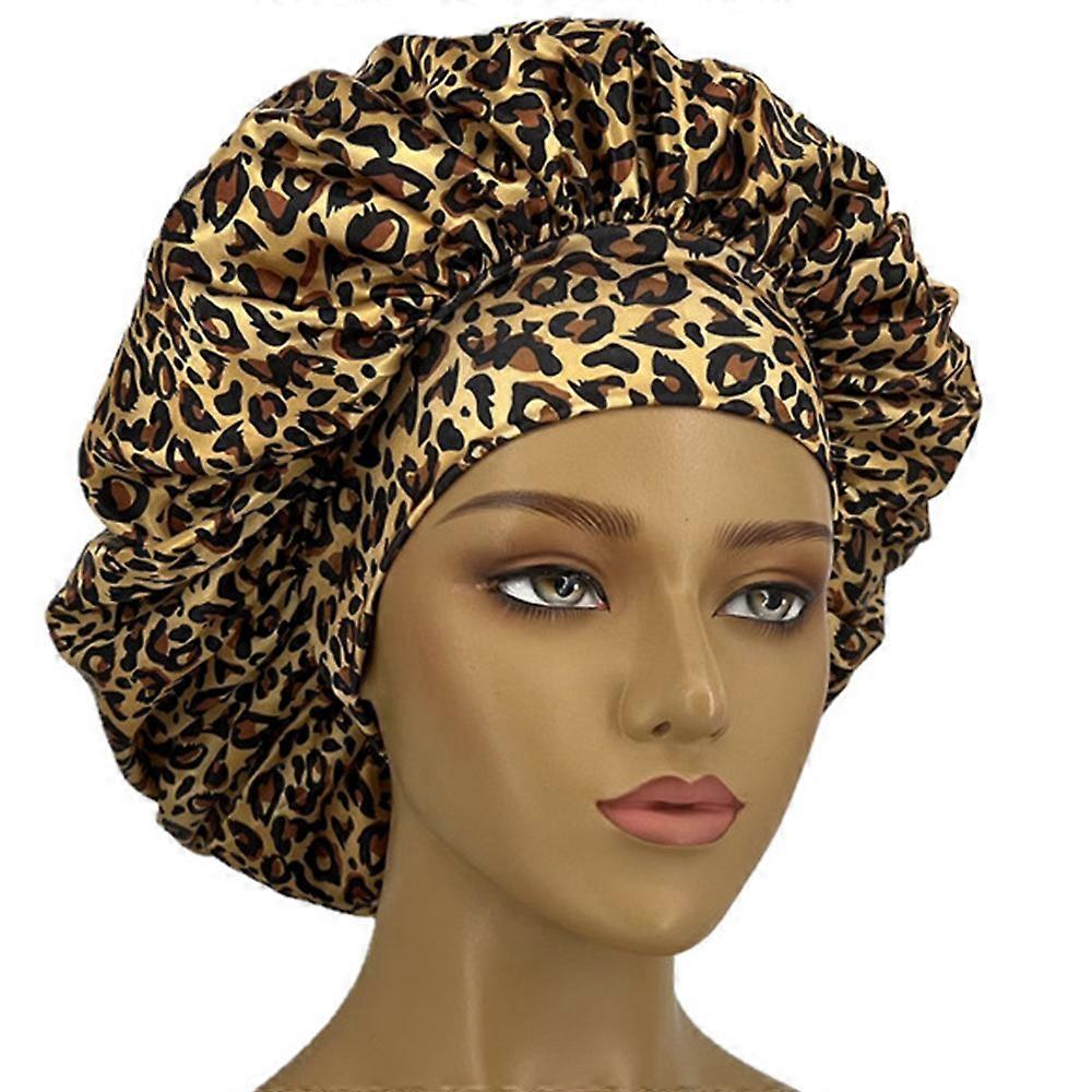Leopard Print Bonnet for Women - Soft, Curl-Enhancing Sleep Cap with Wide Elastic Band, Unscented, Ideal for Dry & Textured Hai