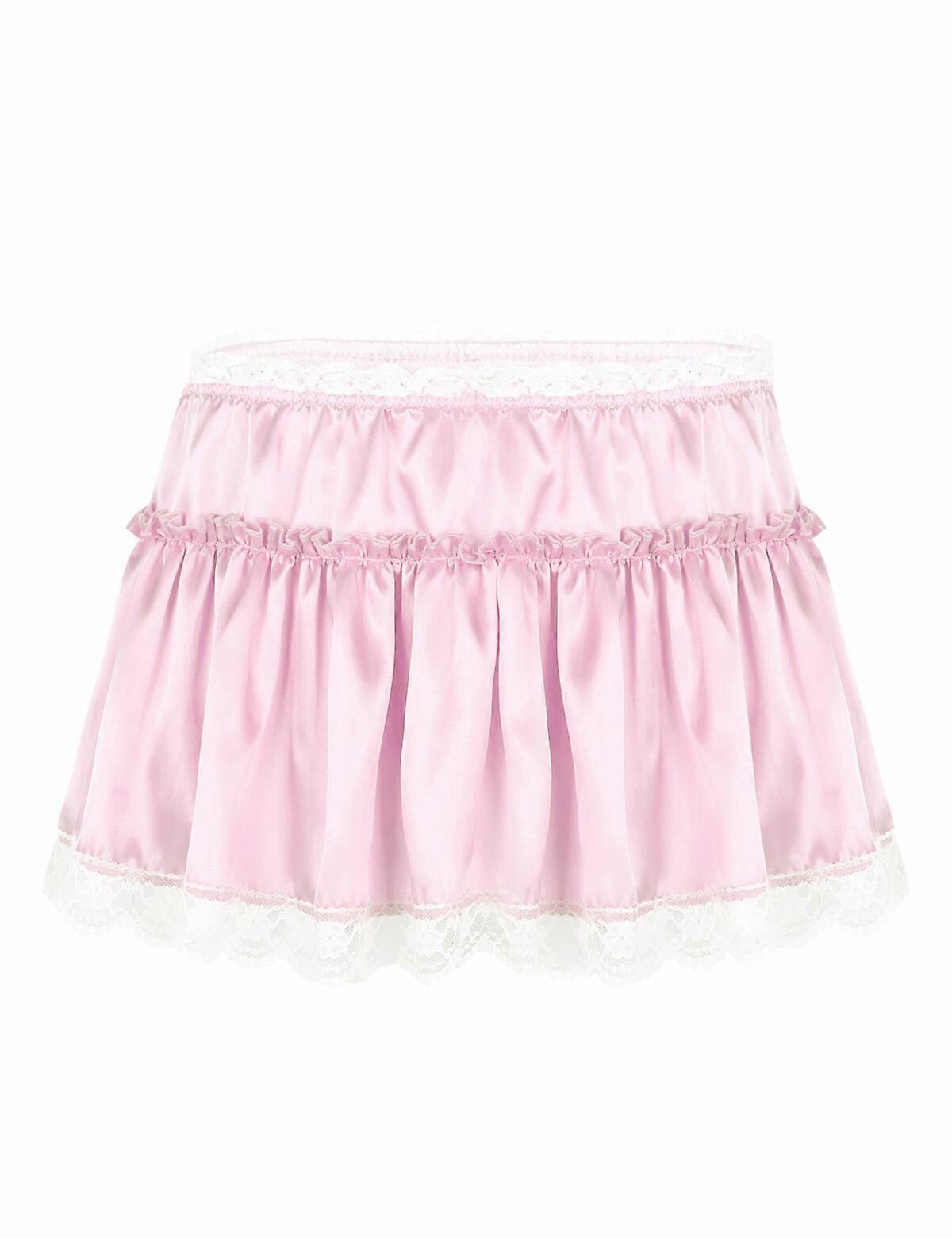Men Frilly Satin Short Sissy Skirt Underwear Crossdressing Lingerie Pajama Dress