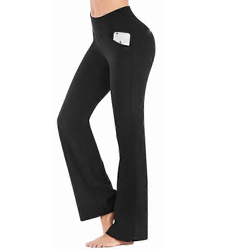 Womens Yoga Pants Flare Leg Fold Over Pockets Bootcut Gym Workout Flare Trousers