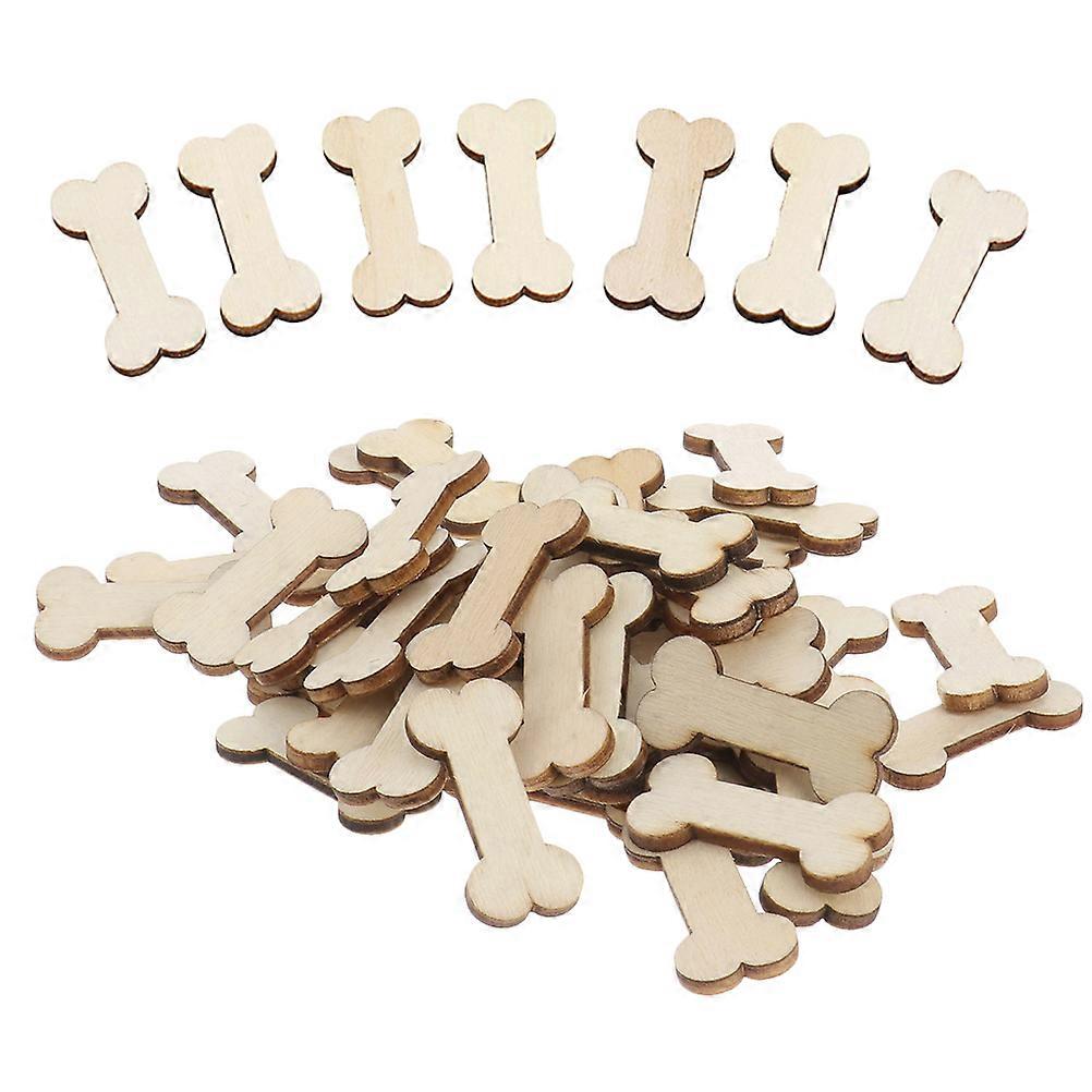 Wooden Dog Bones Craft Accessories for DIY 50pcs Light Yellow Boxwood Unfinished Plain Wood