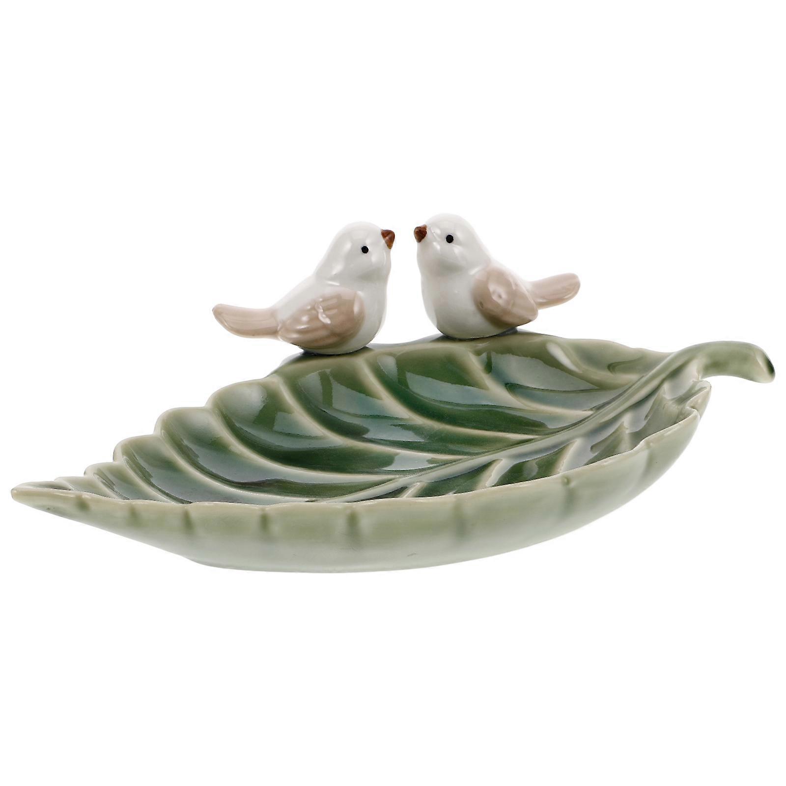 Green Ceramic Bird on Leaf Jewelry Tray for Jewelry Ring Holder Dish