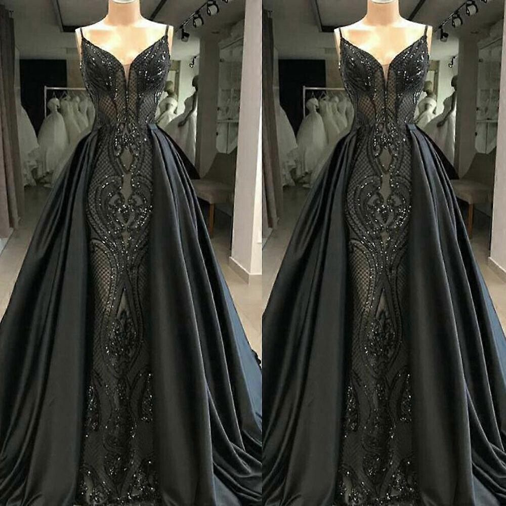 Mermaid Black Prom Dresses Detachable Train Gothic Luxury Formal Evening Gowns