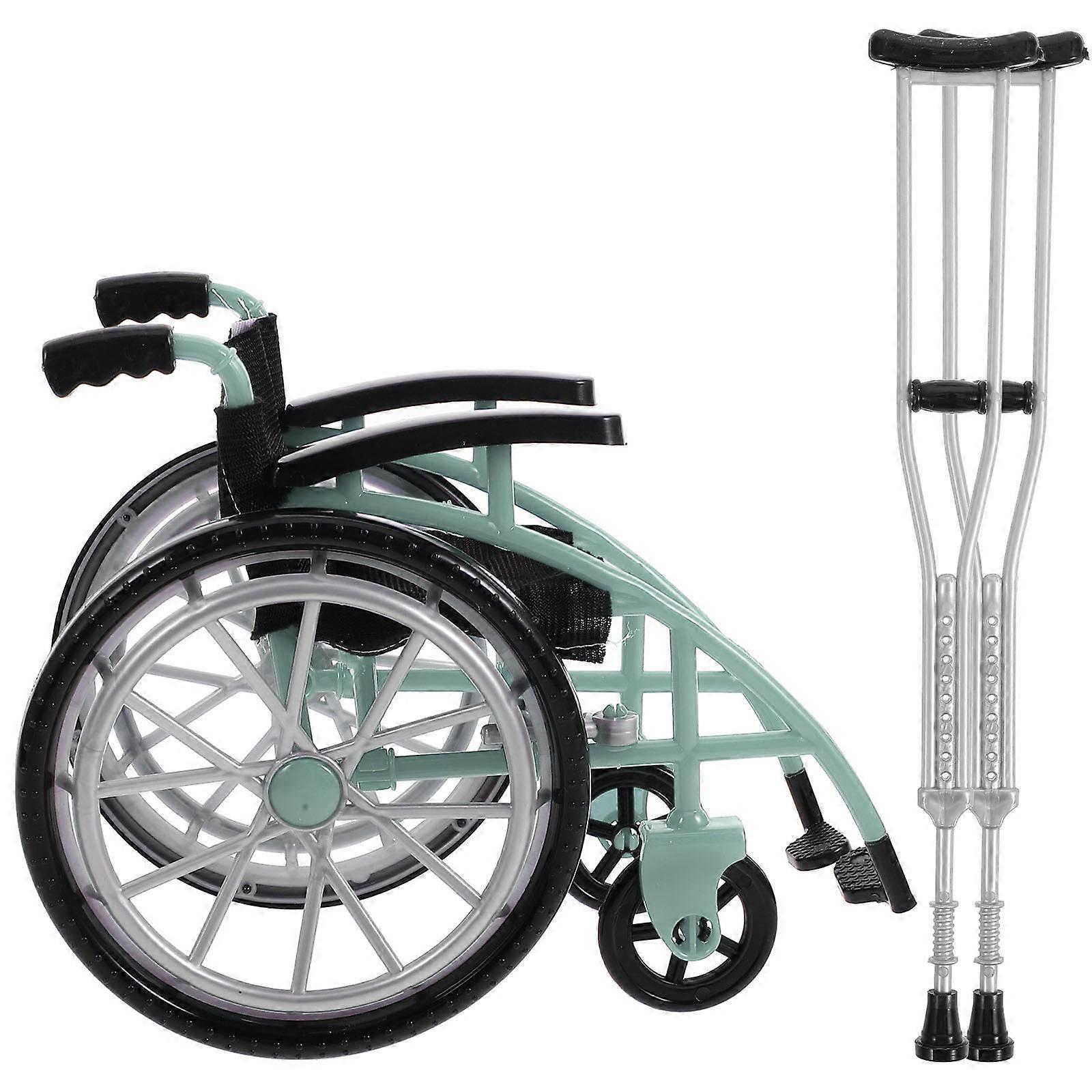 Miniature Doll Wheelchair Playset Including Crutches for Decoration 1Set