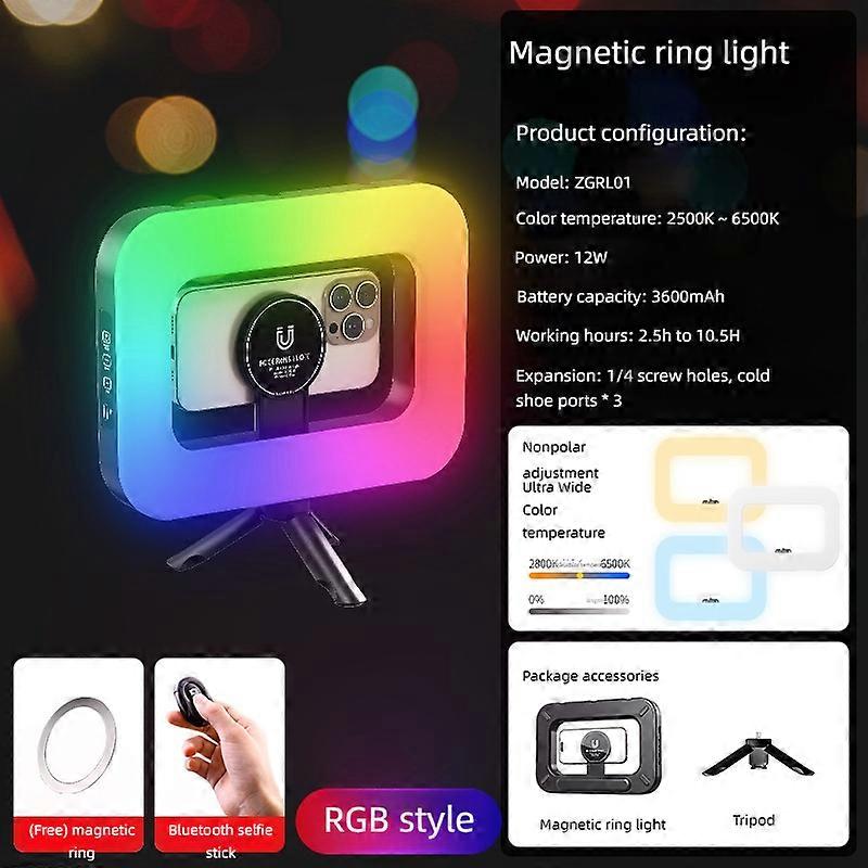 RGB Mnetic Handheld Ring Fill Light - Rechargeable for Phone Live Streaming, Photography, Desktop & Camera Ce Selfie Lightin