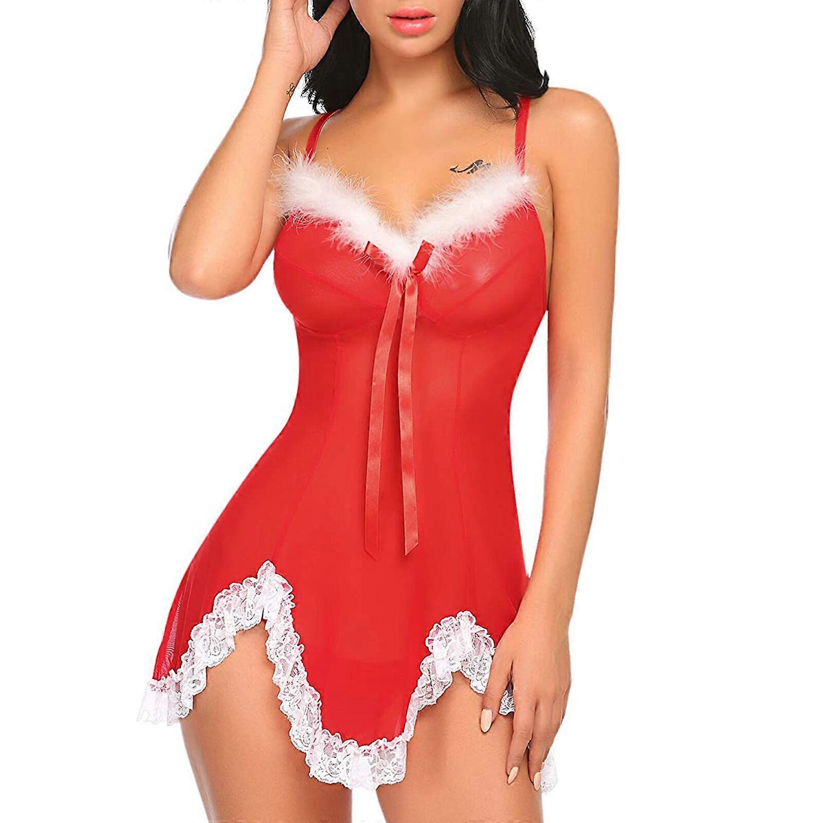 Christmas Lingerie for Women Sex Red Santa Lace Babydoll Chemise XMAS Sleepwear