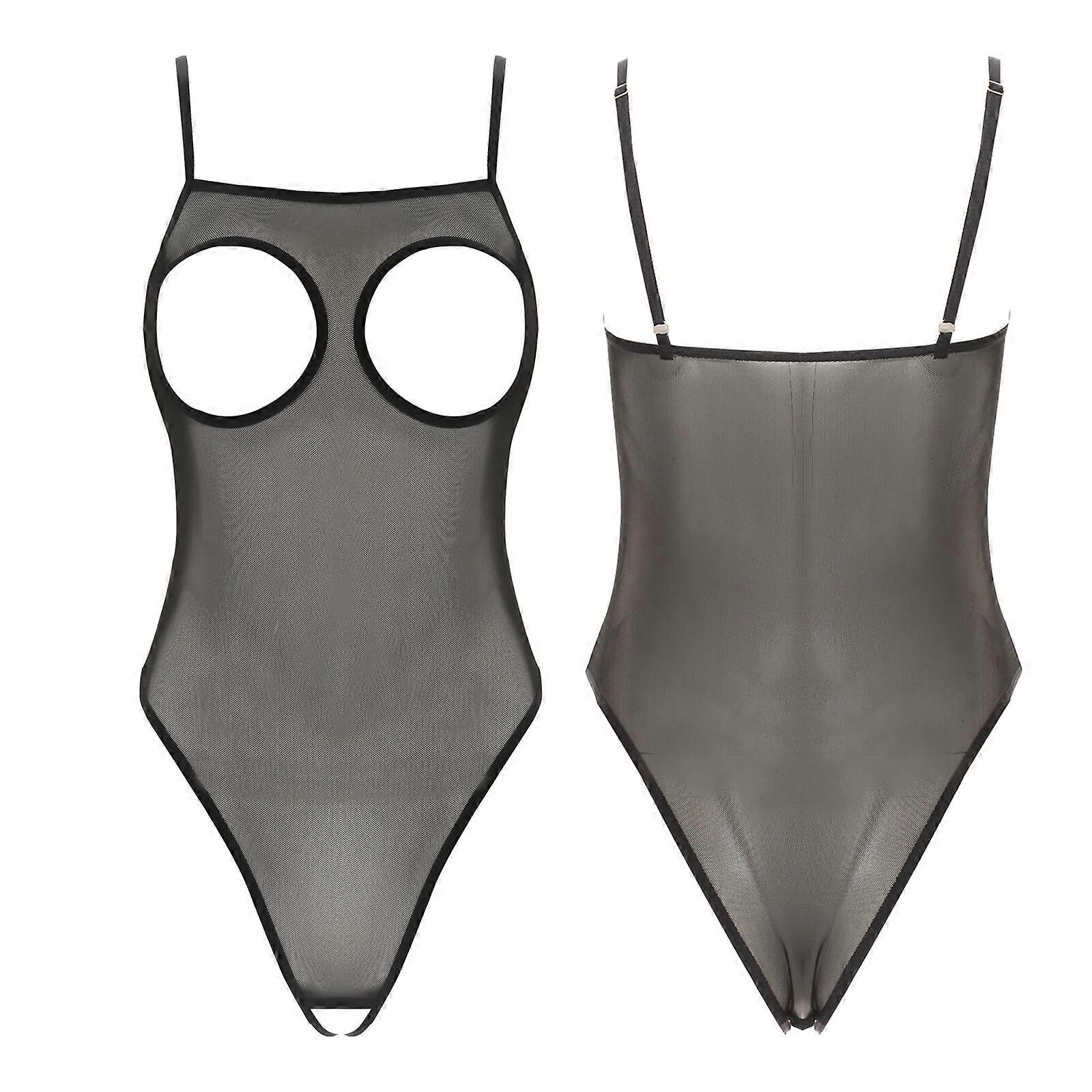 Women See Through Mesh Bodysuit Sexy High Cut Thong Sleeveless Leotard Nightwear