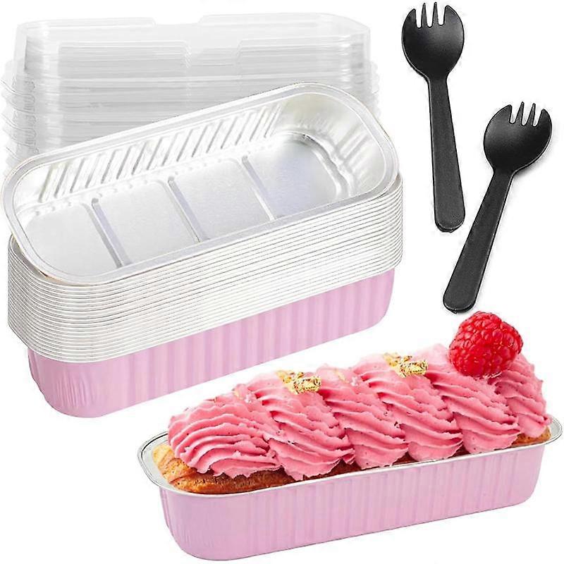20 Pack Mini Loaf Pans with and Spoons,Mini Cake Pans with ,Rectangle Foil Baking Pans Tins Containers,Disposable Cupcake Baking Cups Muff