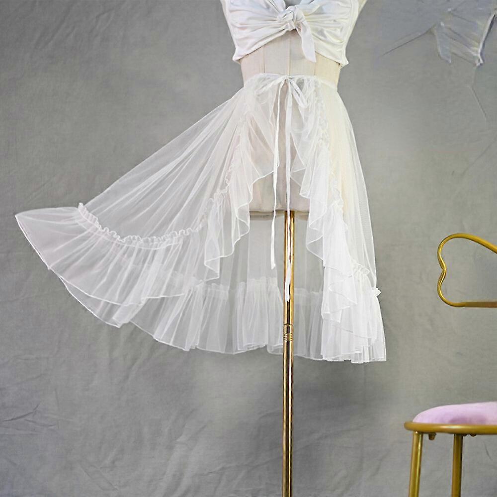 Lady Girl Retro Sheer Wrap Skirt Ruffles Lace Mesh Sarong A-line Petticoat Skirt