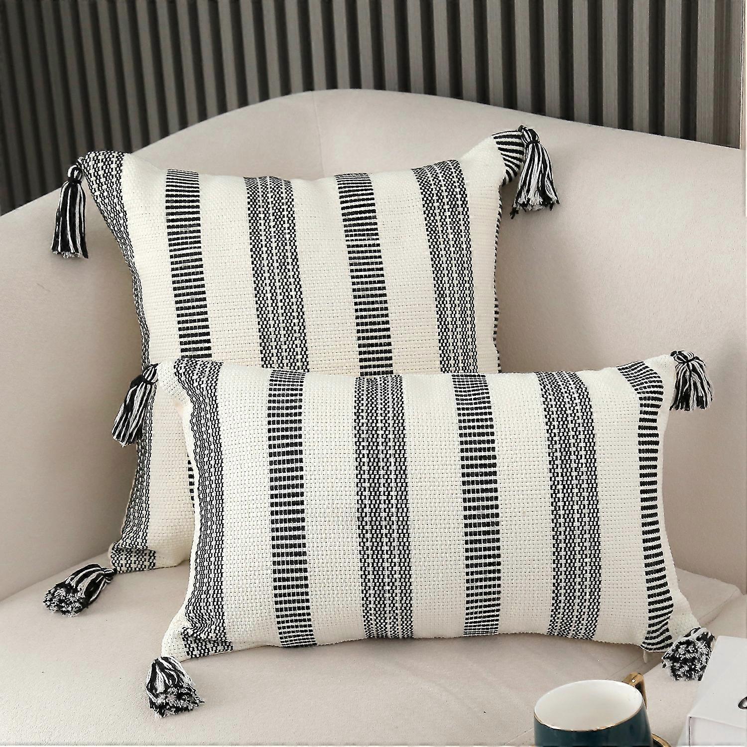 Battilo Boho Throw Pillow Covers Decorative Neutral Striped Pillowcase with Tassels Woven Lumbar Cushion Cover Accent Home Decor