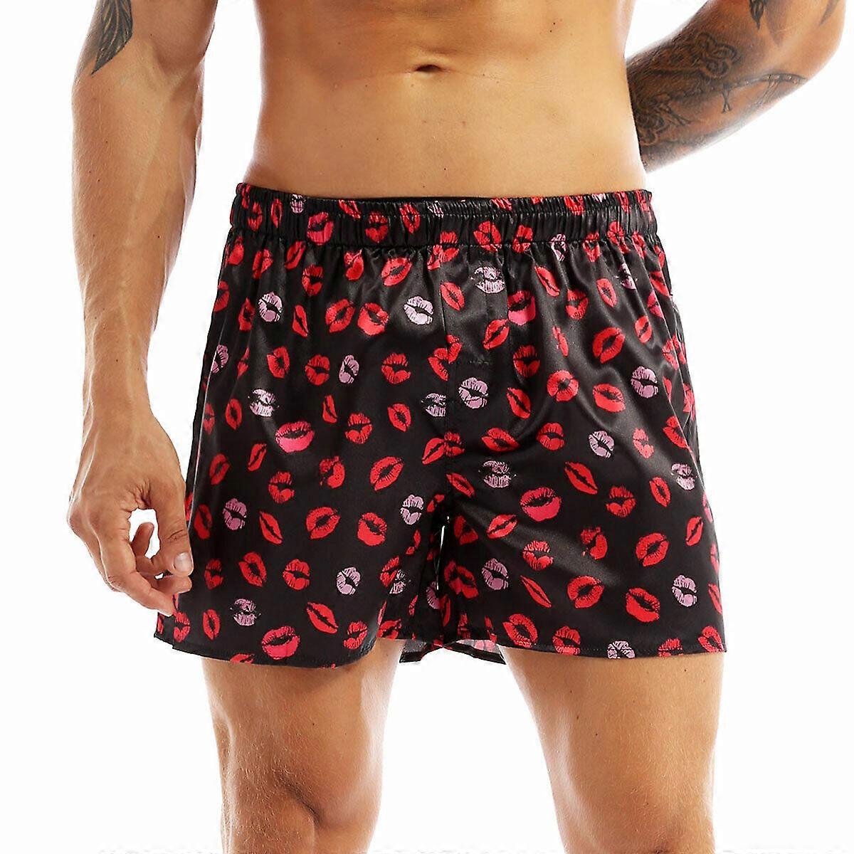 Men Satin Silk Underwear Boxer Shorts Lip Print Lounge Pants Pajama Nightwear