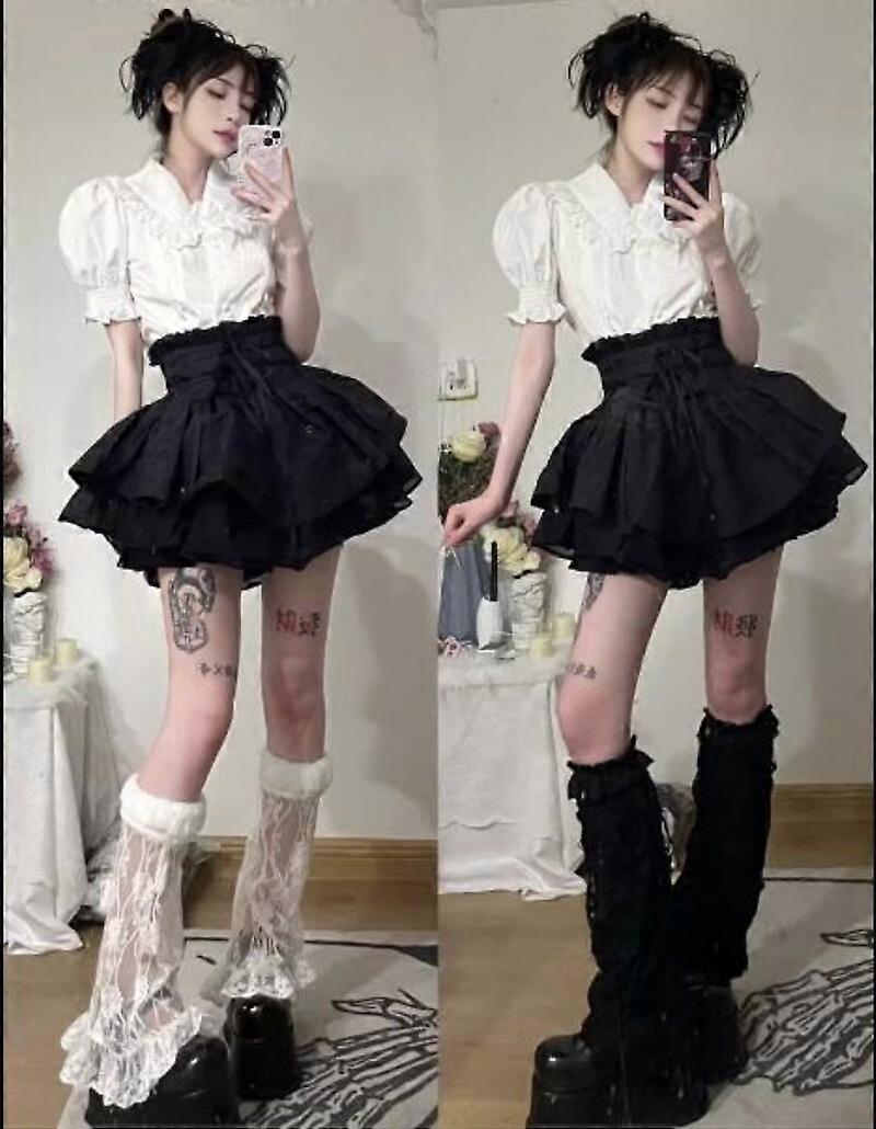Japanese Women lolita bow ruffle skirt princess high waist skirt punk