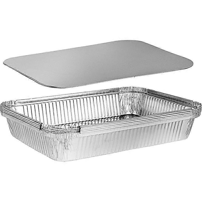 Disposable 4 LB Takeout Tin Foil Oblong Baking Pans 12'' X 8'' X 2'' Inch With Cardboard - Brownies, Bread, or Lunchbox, Pack of 5