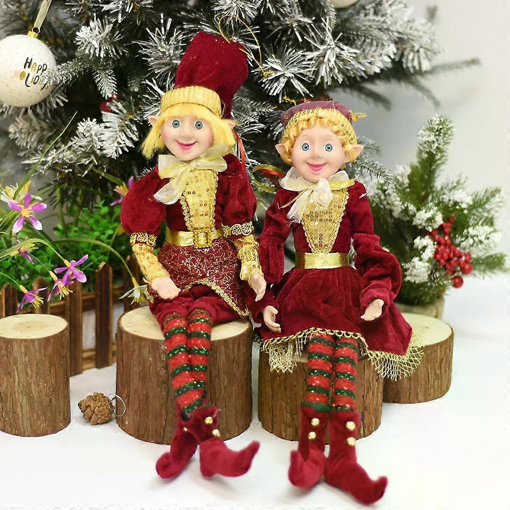 2 PCS Handmade Christmas Hanging Elf Figurine Plush Doll For Kid Gift Handmade Christmas Couple Sitting Decoration Kids Gifts