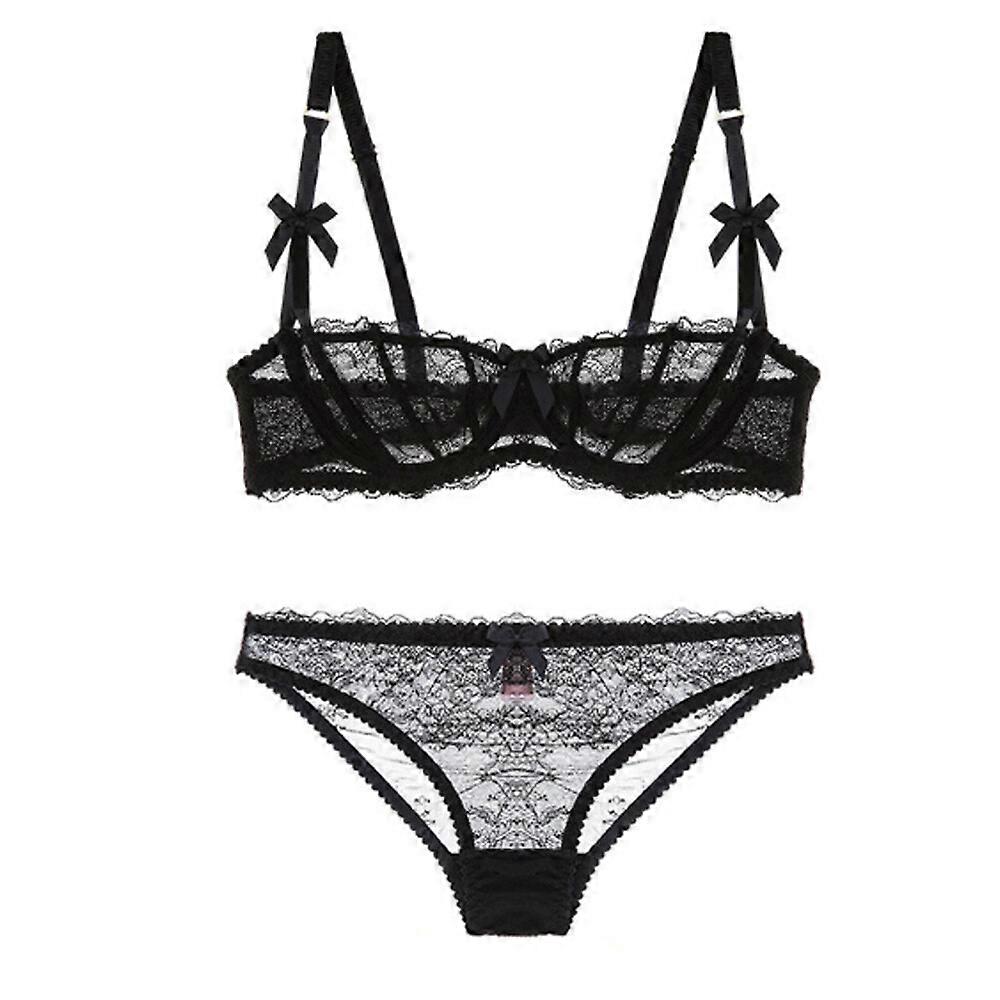 Demi Cup Ladies Bras Set Ultra-thin Lace Brassiere Bralette Bra Cool Panties Set