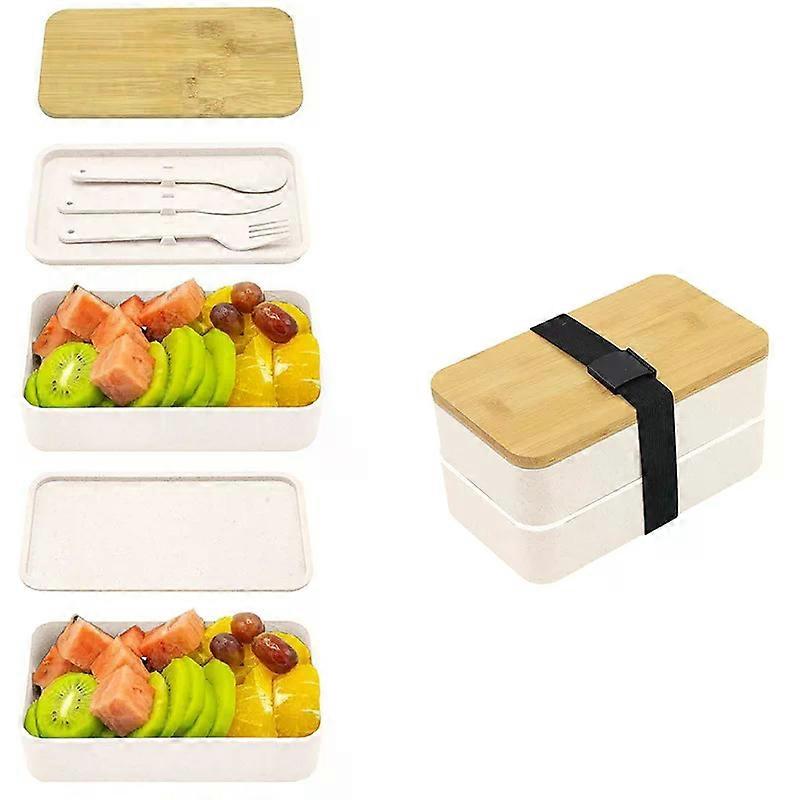 Adult Bento Lunch Box, 2-Tier Food Storage Container Set with Cutlery for Kids/children, Crisper Microwave and Dishwasher Safe