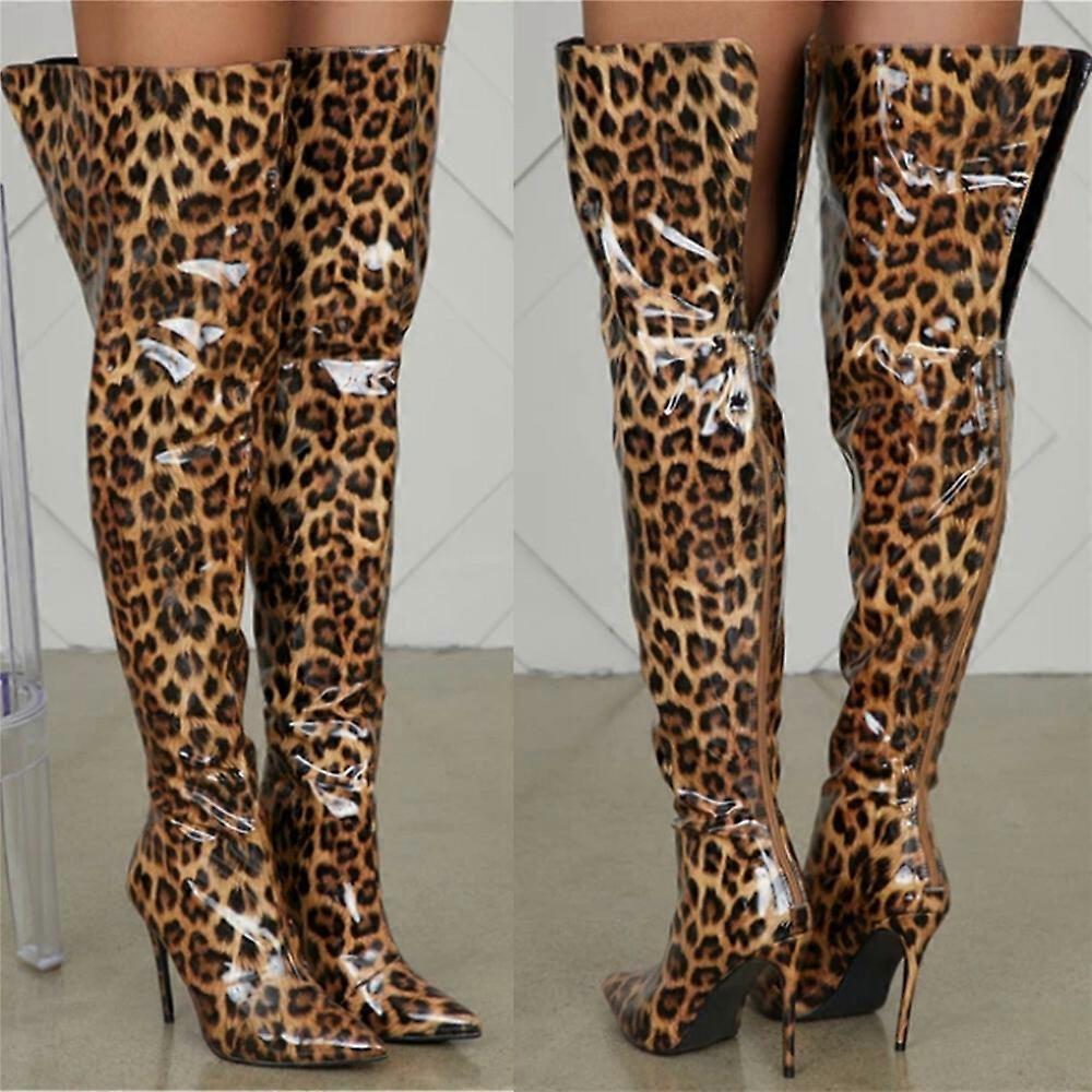 Patent Women Thigh High Boots Leopard High Heel Boots Shoes Woman Plus Size 4-15
