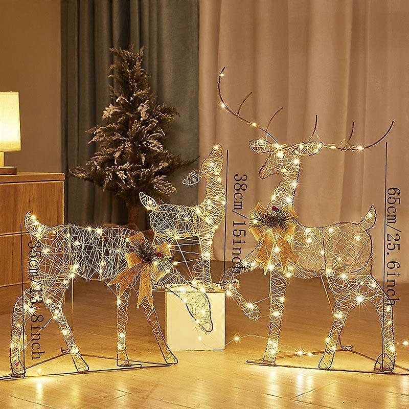 Christmas Reindeer Family Yard Light Decorations Warm White Lights with Metal Stakes for Indoor Outdoor Garden Holiday D��cor