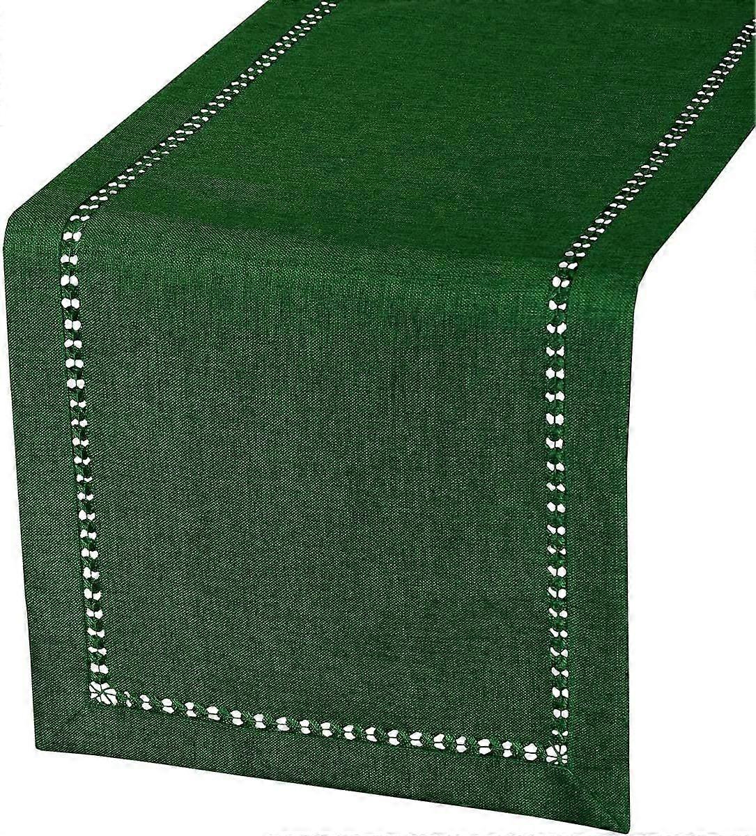 hand-hemstitch instead of machine-hemstitchpolyester; fabric not thinCan be customized to table runner, placemats, napkins, tablecloth of any size; matching cushion covers also availableSimple design but looks very delicateHand wash preferred, slightly iron; no wrinkle