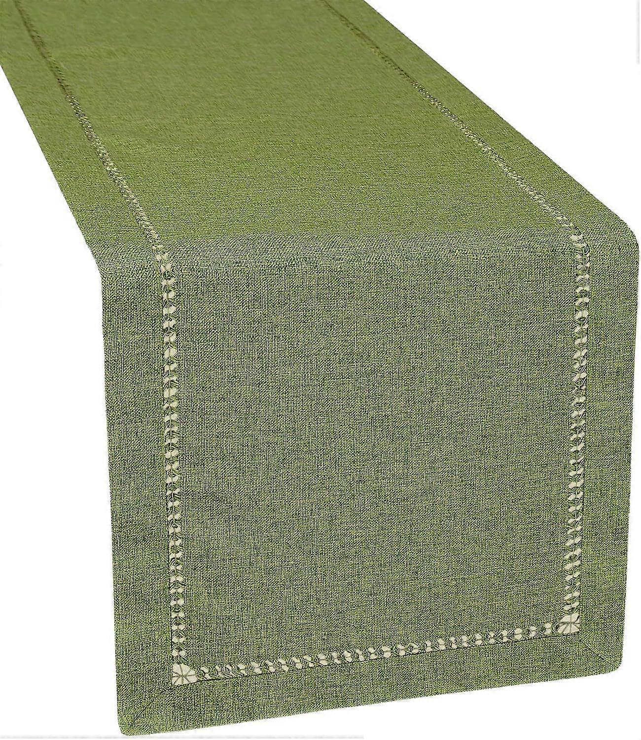 Double Curled Edge Farmhouse Country Solid Olive Green Table Runner (14x48