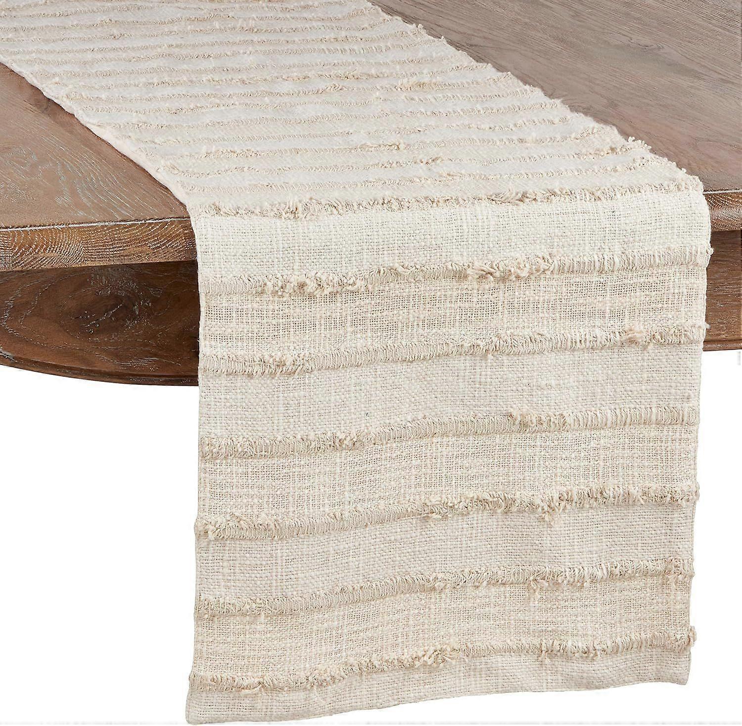Collection Fringe Stripe Table Runner, 16" x 54", Ivory Ivory 16" x 54"